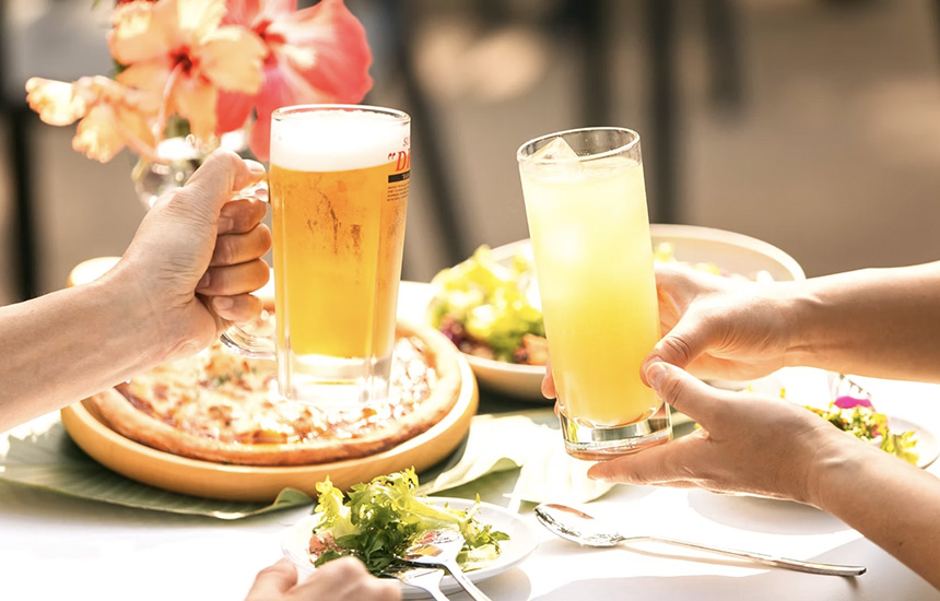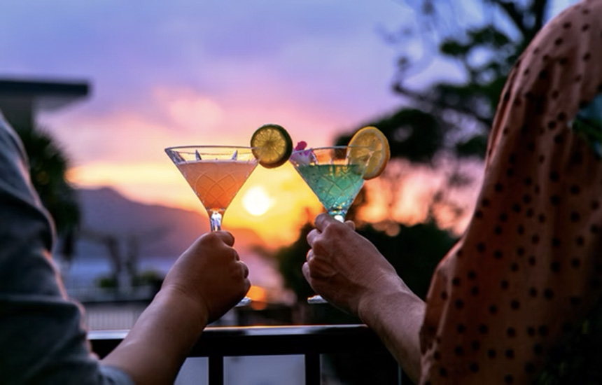 開放感あふれる空間で、奄美ハナハナの美しいサンセットを眺めながら乾杯を。