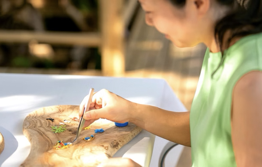 緑の潤いに囲まれた木漏れ日の下、五感で楽しむクラフト体験や、野鳥のさえずりに耳を傾ける自然散策など、森の息吹を肌で感じ、自然の中でアクティブな時間を楽しむアウトドア体験。