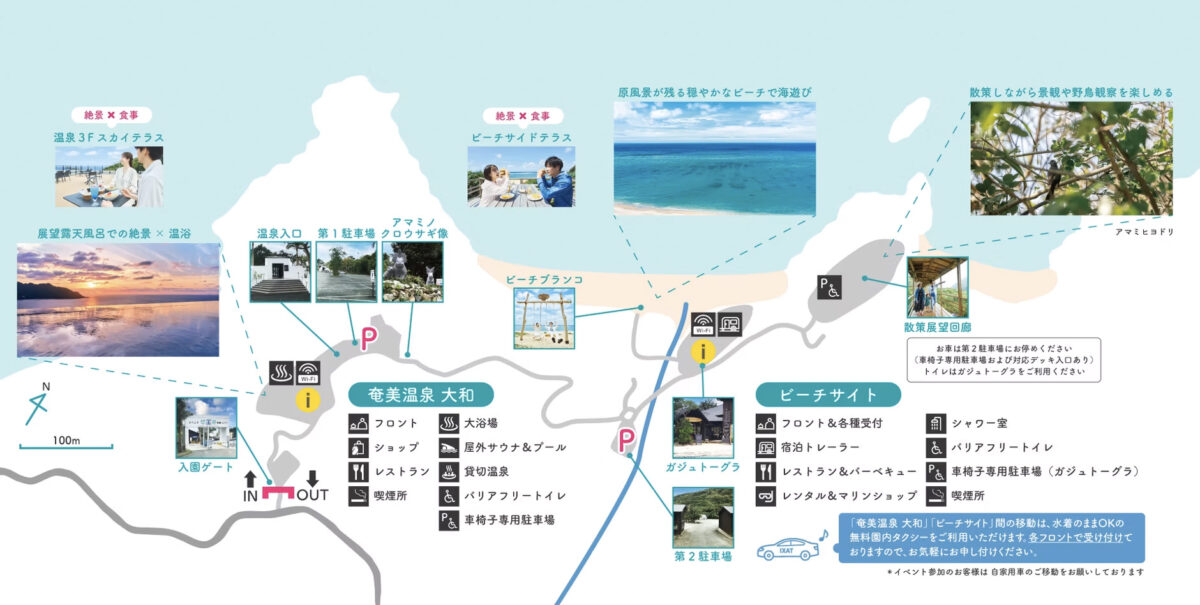 ご宿泊のお客様は、「奄美温泉 大和」の絶景温泉と屋外サウナ・プールが終日無料で何度でもご利用いただけます。​