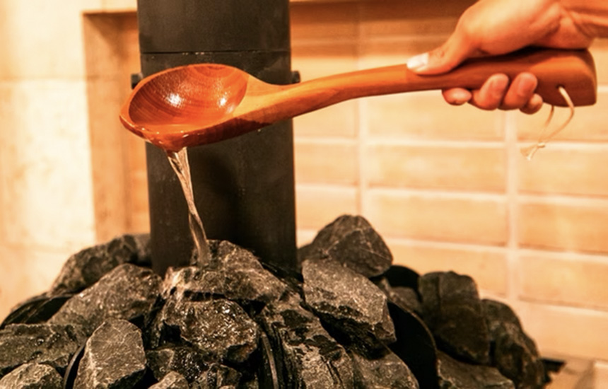 炎のゆらめきを眺めながら、セルフロウリュも楽しめます。