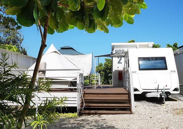 奄美の大自然を存分に味わえるトレーラーハウスとプライベートデッキでの宿泊体験。