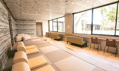 海を眺めながら外気浴ができるテラス付き。畳敷きの小上がりで団らんやうたた寝も。