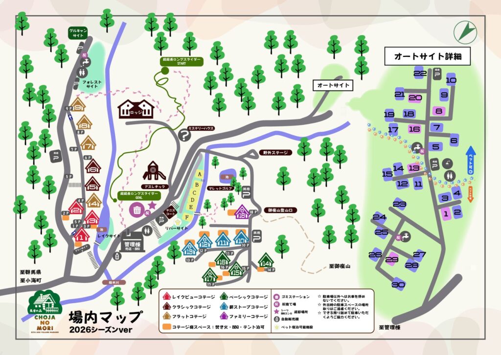 ※隣接エリア:レイクビューコテージ・クラシックコテージ・フリーサイト-フォレスト-