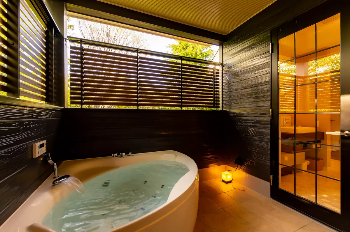 心も身体も安らぐ、プライベート温泉&暖炉が付いた特別な客室。