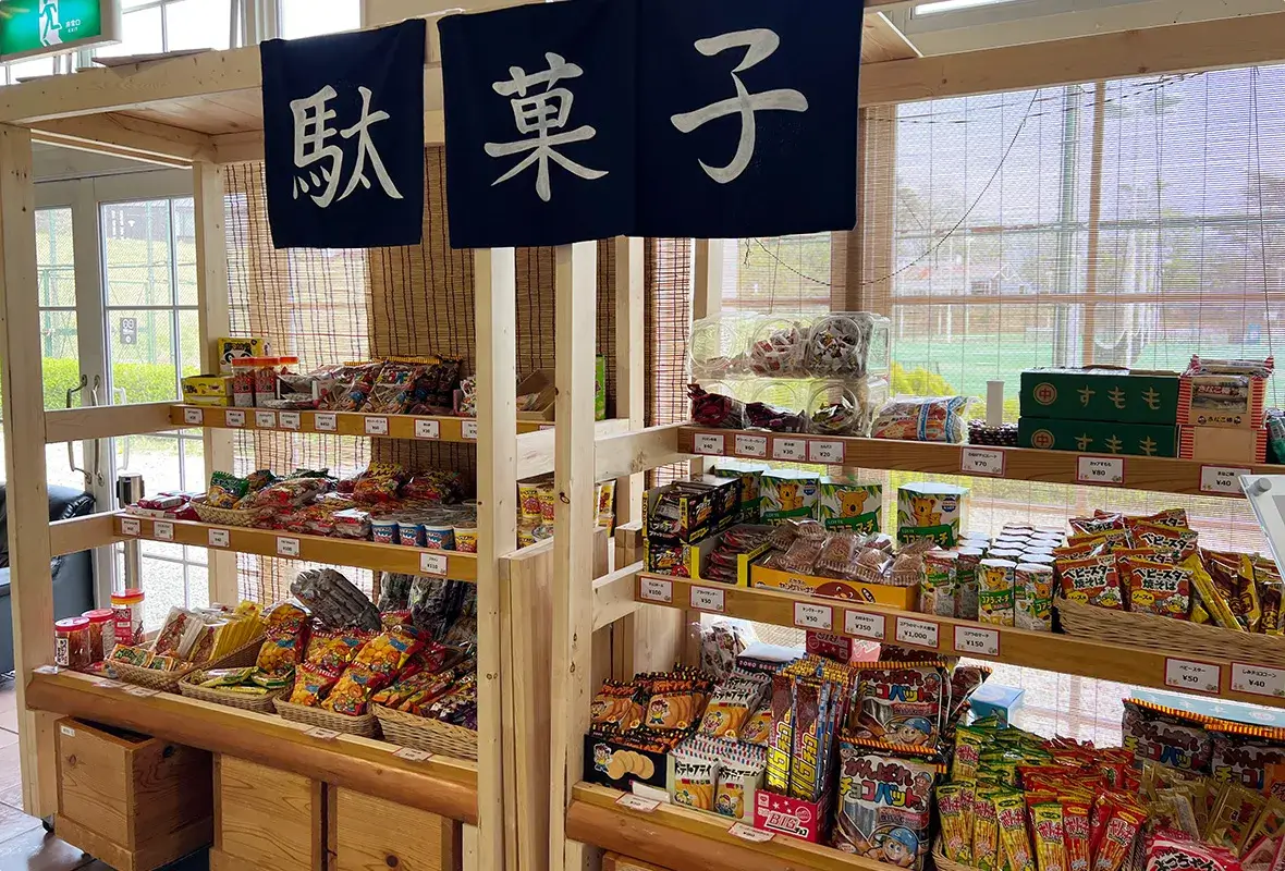 アメニティバーの横には駄菓子コーナーがあり、お好きな駄菓子をお買い求めいただけます。