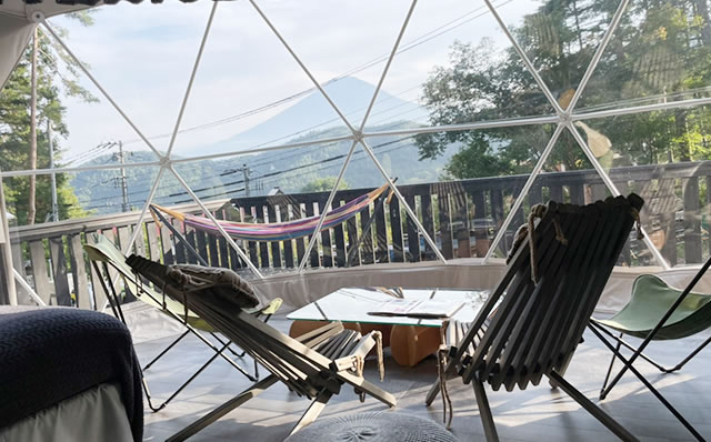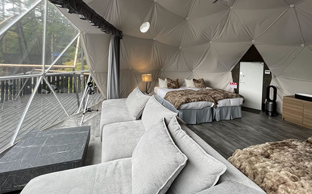 TOCORO. Mt.Fuji CAMP&GLAMPINGでは全ドームから富士山を望め、ハイエンドな内装や設備で贅沢な時間を過ごせます。