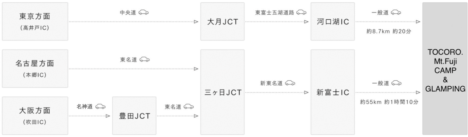 (カーナビを設定する場合は、山梨県富士河口湖町大石2526に設定して頂くと当施設の手前まで案内されます。グランピング場の向かいにございますゲストハウス咲耶(さくや)および富士見ホテルの看板を目印にご来場ください)