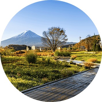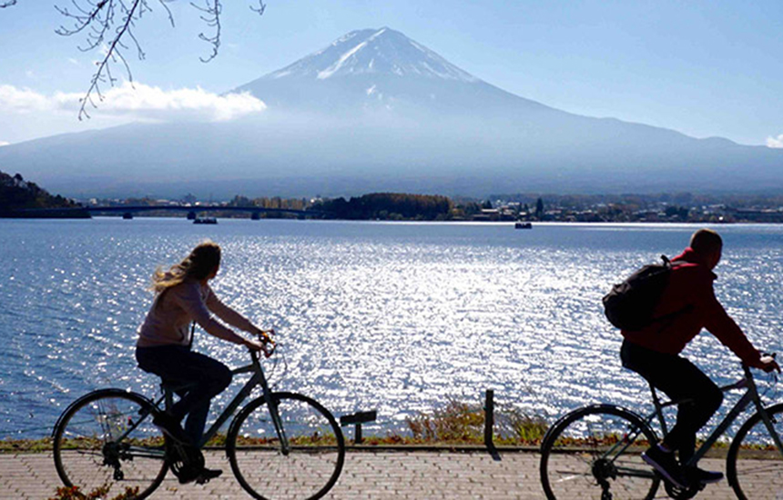 施設では電動自転車をご用意しております。湖畔を自転車で一周することもできます。四季折々の河口湖の姿を是非ご体験ください。