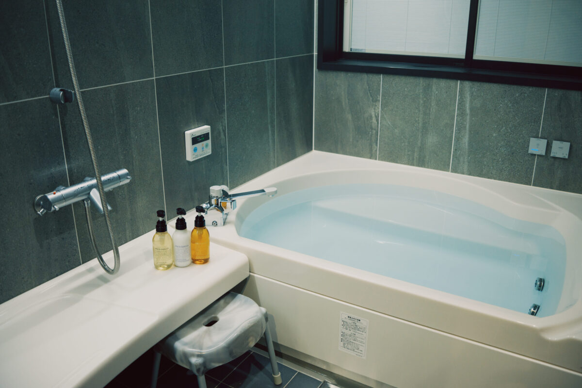 肌触りの良いタオルや高品質のバスアメニティなど、細部までこだわった備品をご用意。日常を離れた旅先でも、まるで高級ホテルのような快適さを感じていただけます。作務衣タイプのルームウェアや歯ブラシ、ドライヤーなど、ご滞在にあたって不自由のないようご用意しております。