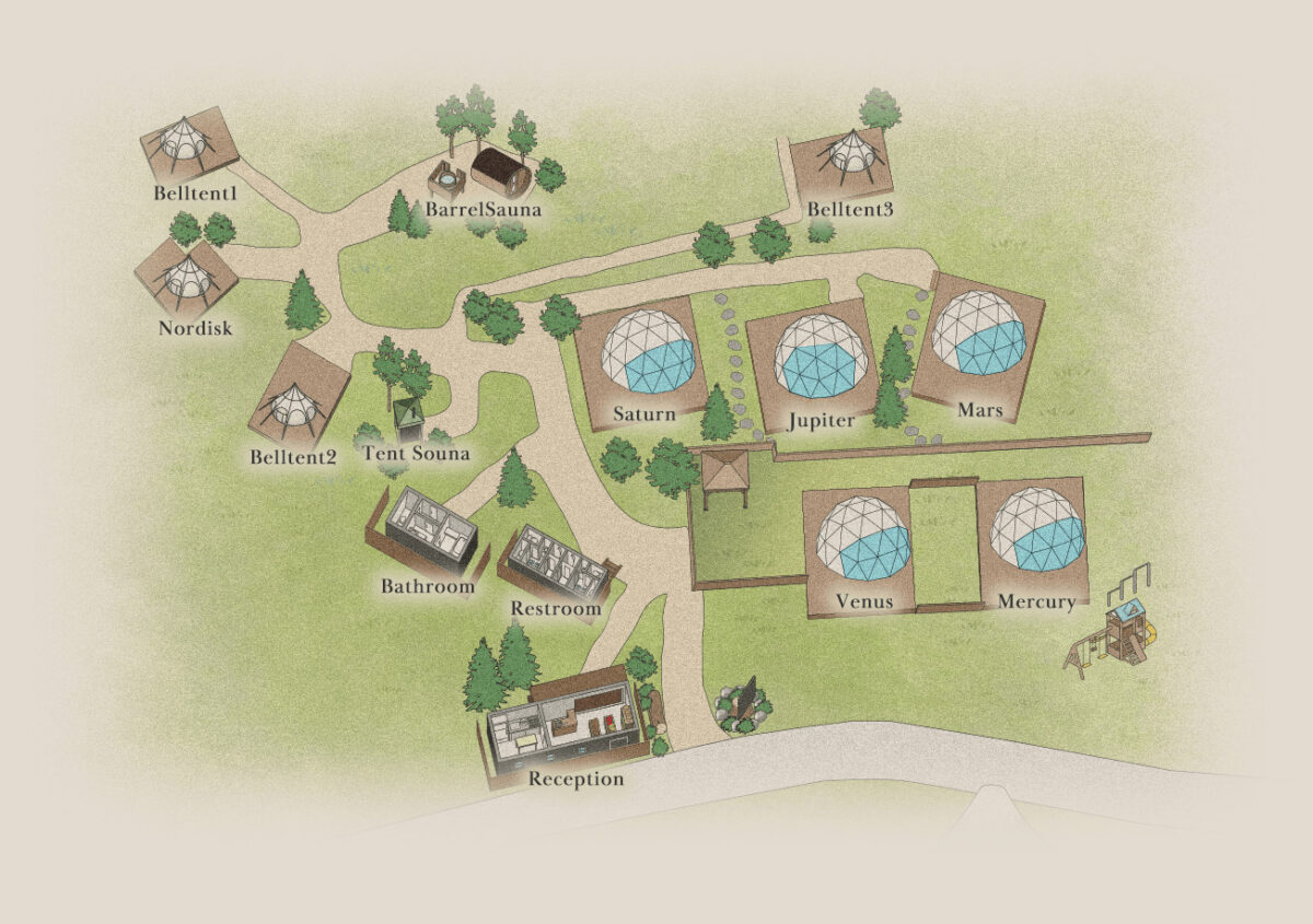 ※ワンちゃんとのご宿泊が可能なドームのお部屋はMercuryとVenusになります。テント型のお部屋はすべてご宿泊可能です。