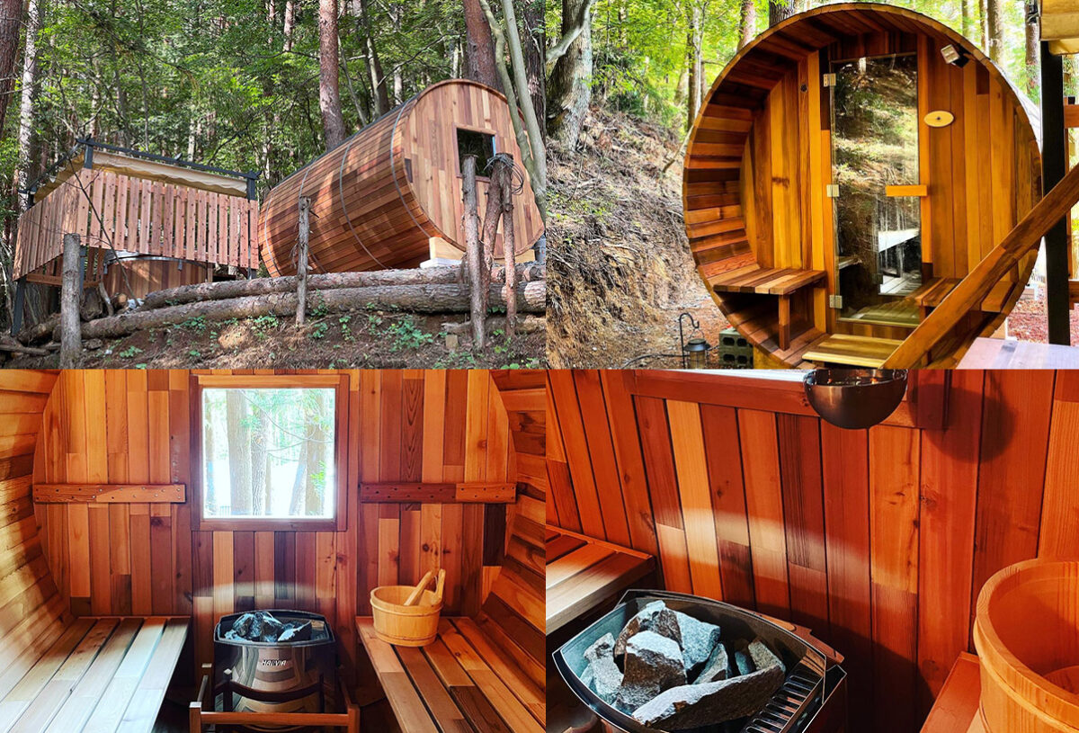 森林の中で富士山を見ながらバレルサウナを体験してみませんか?天然木の樽型で最大限にサウナを楽しめる仕様になっております。