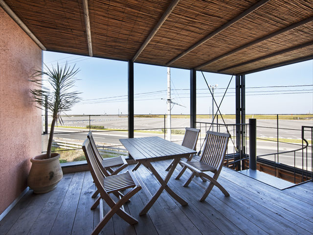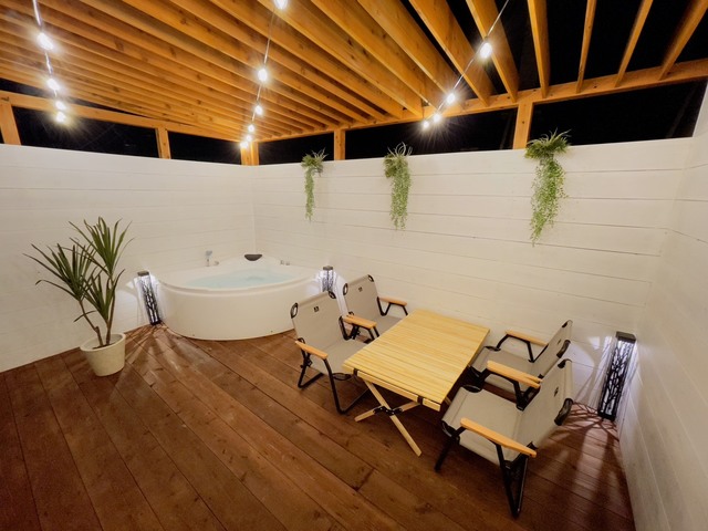 専用の広いテラスとオープンエアバス。