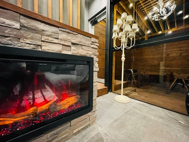 木の温もりを感じられる室内には、暖炉型ファンヒーターを完備しています。