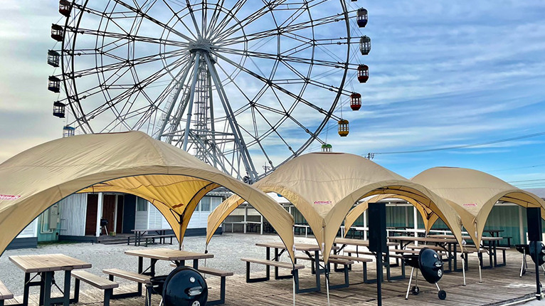 観覧車と東京湾を望む開放的な空間でバーベキューをお楽しみいただけます。