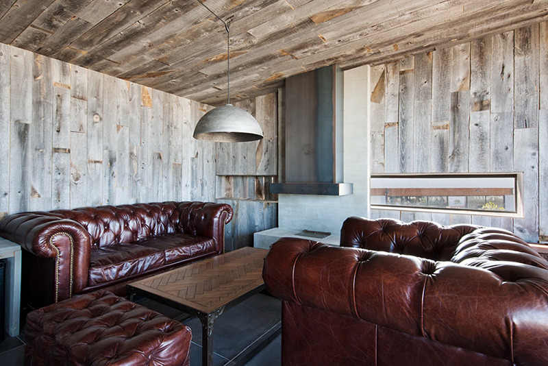ファイヤーピット(オリジナルデザイン暖炉)を中心にシックにまとめられた、ヴィンテージ感のある空間です。