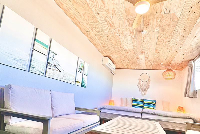 「ビーチライフ」をテーマにデザインされた30㎡超の開放感のある空間でご家族やグループでの「非日常"リゾート"トリップ」を体験してください。