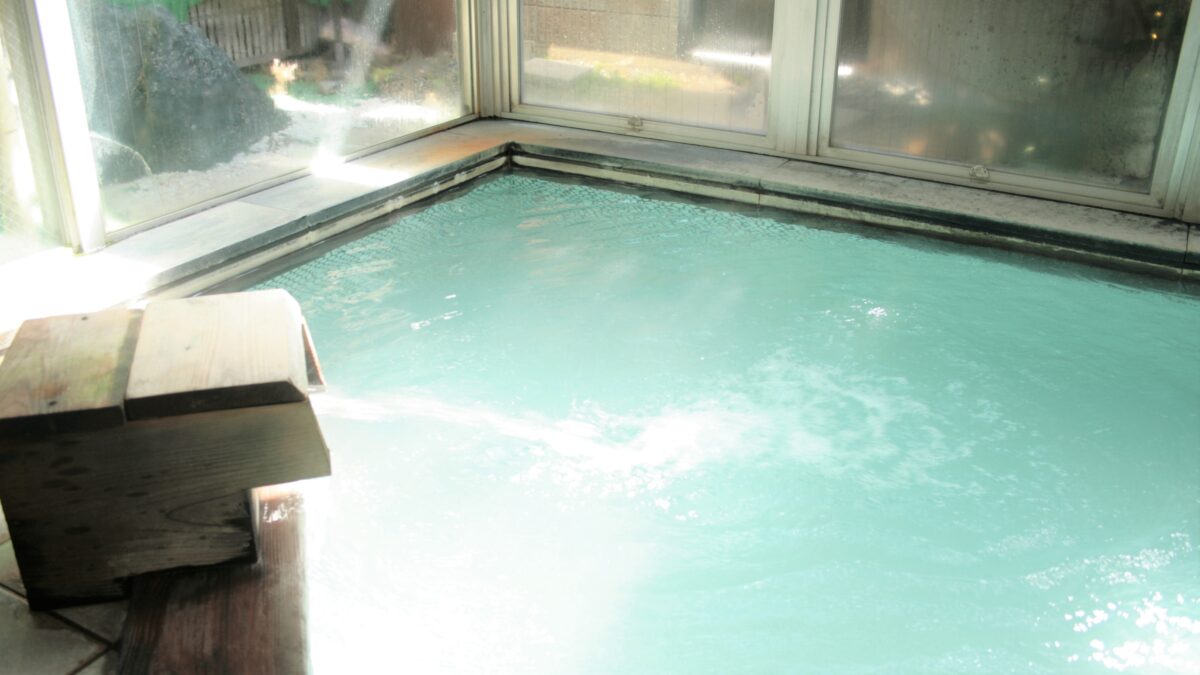 複数の源泉のため天気によって色や温度が異なる七変化のお湯。