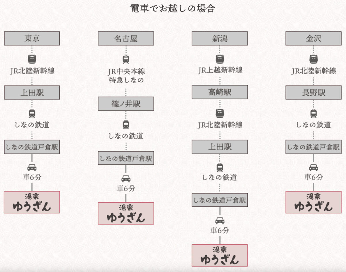 東京から電車で約2時間30分、しなの鉄道戸倉駅から車で約6分です。