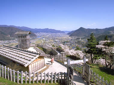 映像・展示室ではビデオ上映や戦国時代の出土品の展示などを行っています。山頂は見晴らしも良く、千曲川や温泉街、善光寺平が一望できます。また、大河ドラマ『風林火山』のロケ地にもなりました。