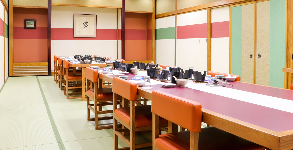 最大70名まで利用できる大広間や、二次会にぴったりのカラオケルームもあり、団体・グループでの旅行や合宿にもおすすめです。