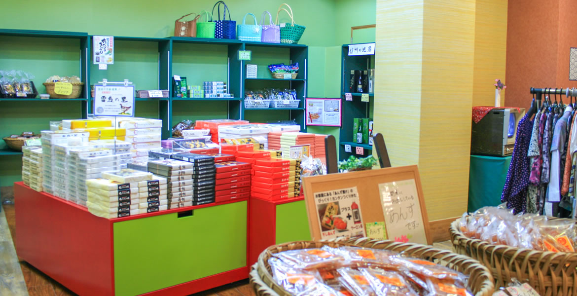 信州の銘菓をたくさん取り揃えました。他にも作りたての温泉まんじゅうなど品揃え豊富にご用意いたします。